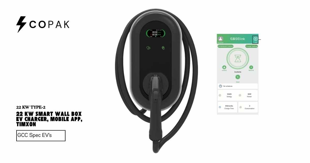The Smart 22kW Type-2 Wallbox Charger by Timxon offers fast, efficient charging for GCC Specs electric vehicles. It features 22kW three-phase output and a 5-meter tethered cable, ideal for both residential and commercial use. With WiFi connectivity and a cloud-based mobile app, users can remotely manage charging, schedule sessions, and track energy consumption. Built with IP54-rated weatherproofing and certified safety features, it delivers performance and reliability in all environments.